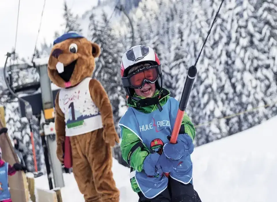 Can you still remember the first time you stood on a pair of skis? It’s a big day! Children meet our mascot Burmi the marmot during a ski course. This makes the holiday in Kleinwalsertal even more fun! He accompanies the young ski enthusiasts on the Burmi descent or the cross-country skiing trail. Where are the best toboggan runs and how do you jump the obstacles in the Kids Ground Fun Park? Burmi shows you how!