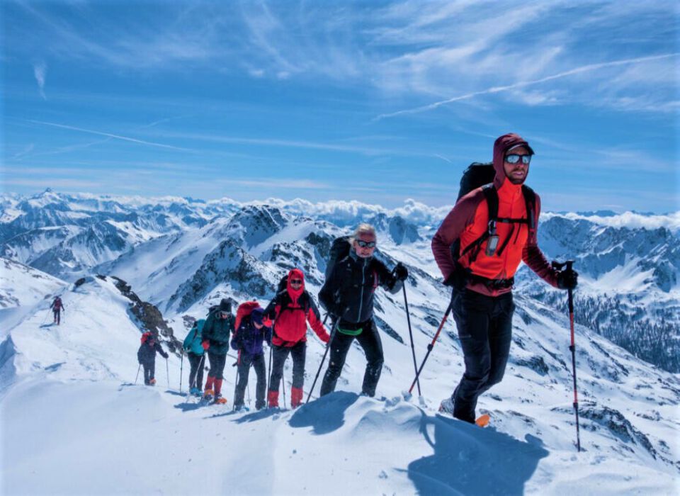 Guaranteed snow and varied, Kleinwalsertal offers numerous freeride routes and tours for deep snow skiing, snowshoe hiking, or ski touring. Immerse yourself in a fantastic world of freeriding and ski touring with the guides from the mountain and ski schools. Kleinwalsertal is known as a "snow hole" and its excellent conditions inspire, often until April. Each ascent is doubly rewarded: with a breathtaking view of the snowy peaks of Vorarlberg and with a descent through glittering powder.